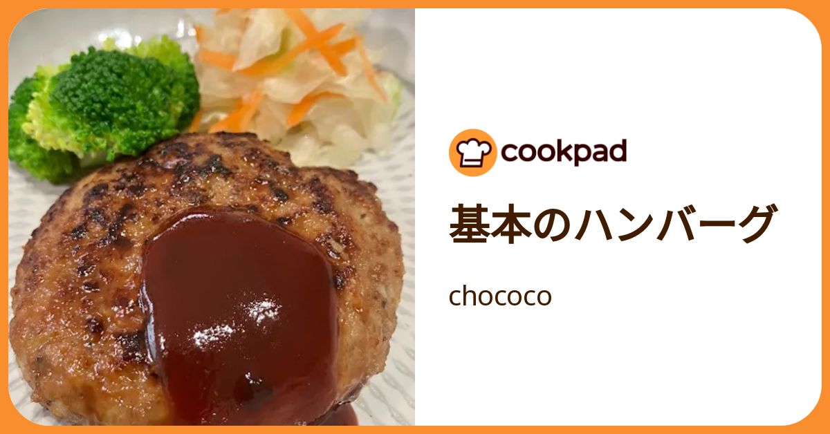 chococo(クックパッド) 2025年6月18日 最終更新日時 : 2026年3月18日 ツバサパソコン教室 生徒 📺 詳細・レシピ集(クックパッド) 📺 開設時期・2025年6月 📺 リンク chococo -クックパッド 基本のハンバーグ by chococo 【クックパッド】 簡単おいしいみんなのレシピが392万品 「基本のハンバーグ」の作り方。いつも作っている、家庭的な基本のハンバーグです。 材料: 合いびき肉、玉ねぎ、パン粉 Cookpad ツバサパソコン教室の生徒様