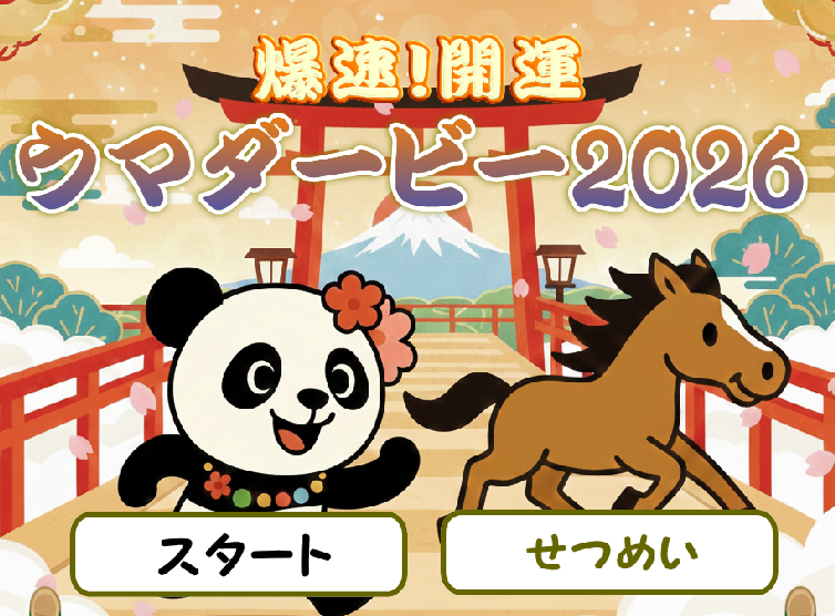 ツバサでじたるJr.のマスコットキャラ・パンダのメイリンちゃんが、2026の干支・ウマくんと開運レース!